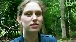 Pregnant Lassie wondering thru the woods