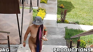 After cleaning the mansion, naturist wife pee and she uses the cuckold as toilet paper