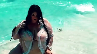 Asian Babe Putri Cinta Toying with Her Muff On Empty Beach