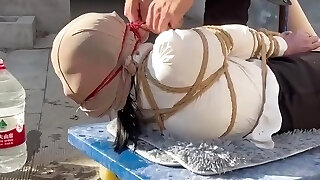 Bigbooty restrain bondage slut dominated by dude in BDSM session