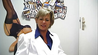 Kinky boss lady in nylon pantyhose pleasures her masculine secretary