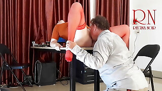 Sexy secretary dominates the spear with her feet