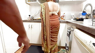 Indian Couple Romance in the Kitchen - Saree Sex - Saree lifted up, Butt Spanked Boobs Press