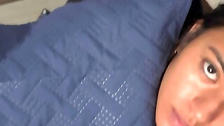 Petite 20 year old girl dominated, he almost creampie her puny pussy