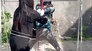 Femdom Tied Gimp Extreme Ballbusting and Whipping Torture PART1