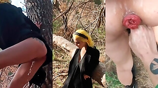 Piss in forest with mini-rosebud