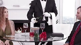 Hubby Cucked by Big Tits Towheaded Kenzie Love Who Sucks And Fucks Immense Spear Waiter Dorian Del Isla